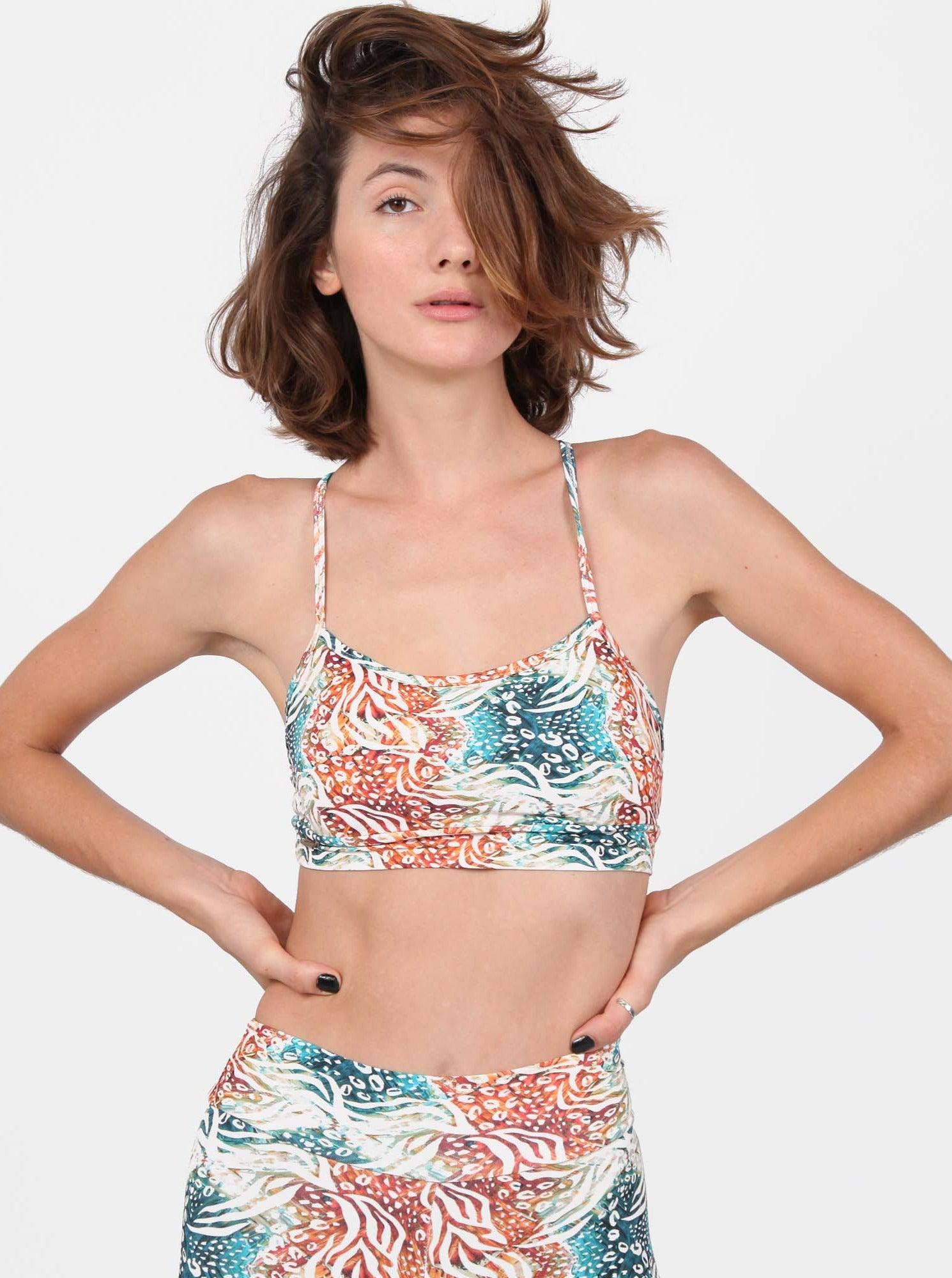 We made this top to be very light, soft, supportive and comfortable to wear all day. Perfect for warm weather, this fabric wicks sweat, leaving no sweat marks. This design is particularly flattering for larger bust sizes and require no adjustment during heavy workouts, so you can keep your mind on your movement.